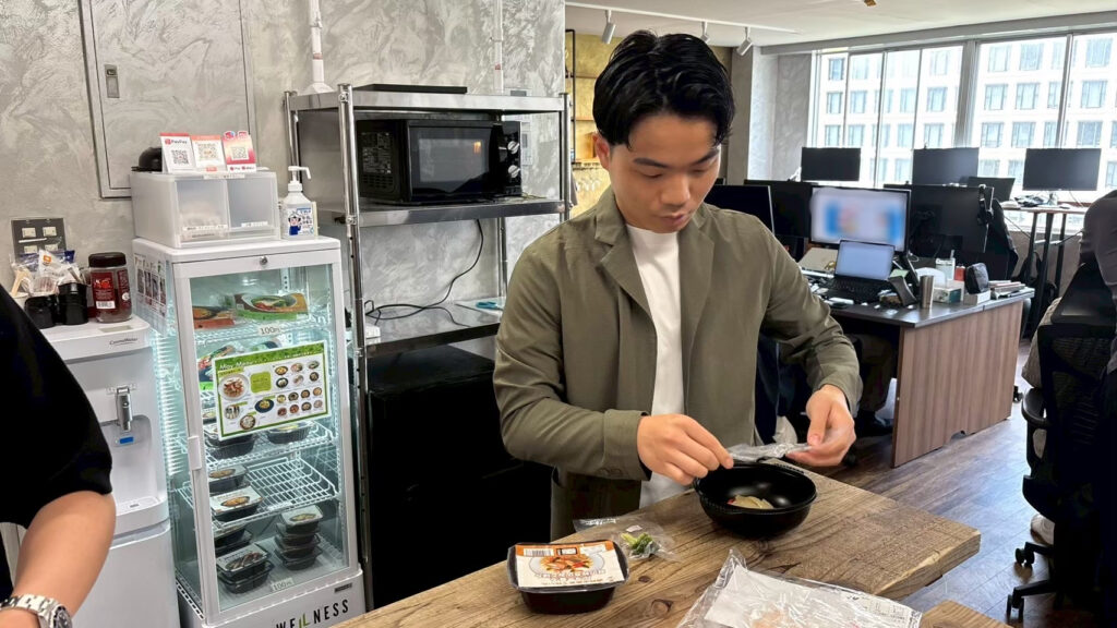 意外と優しいうえもっちゃんは、ちょっと時間を後ろにずらして、余っている社食を食べていました。