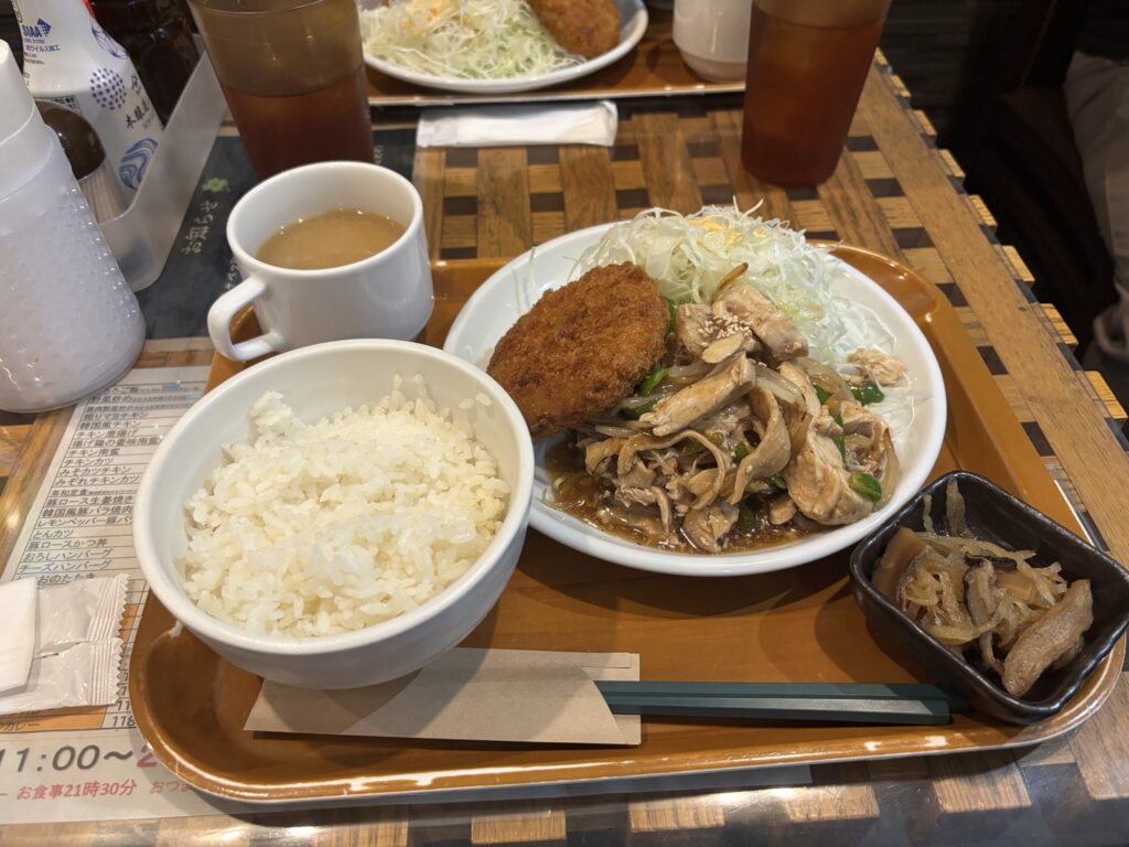 ▲腹が減っては戦はできぬ。会場近くの定食屋さんで腹ごしらえ。