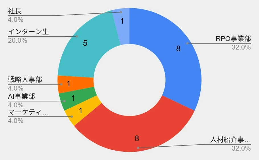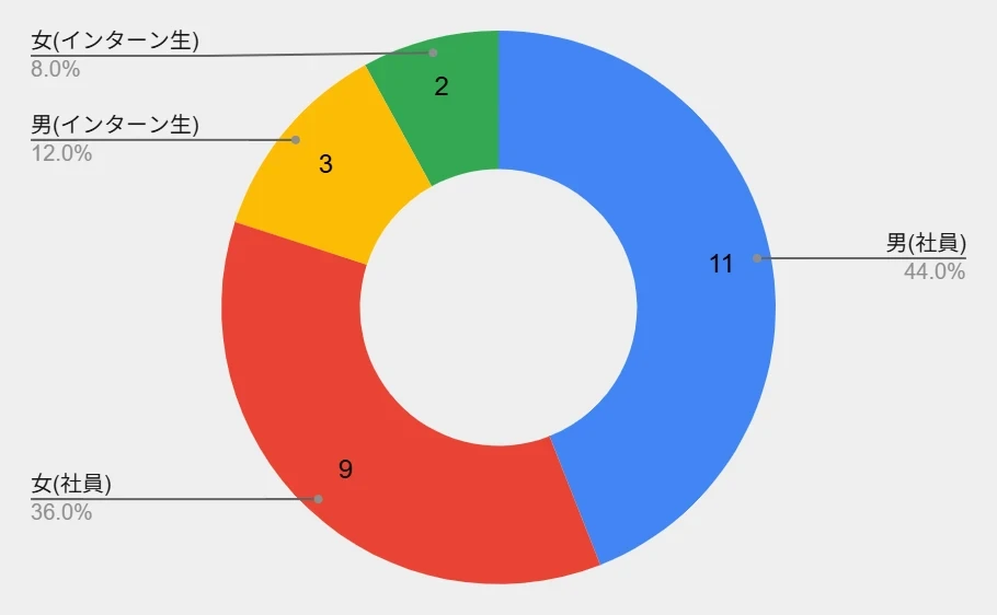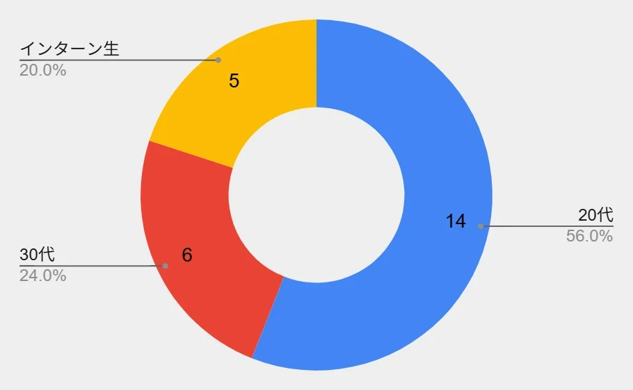 今日時点(2025.10.08)で、社員が20名、インターン生が5名の組織。